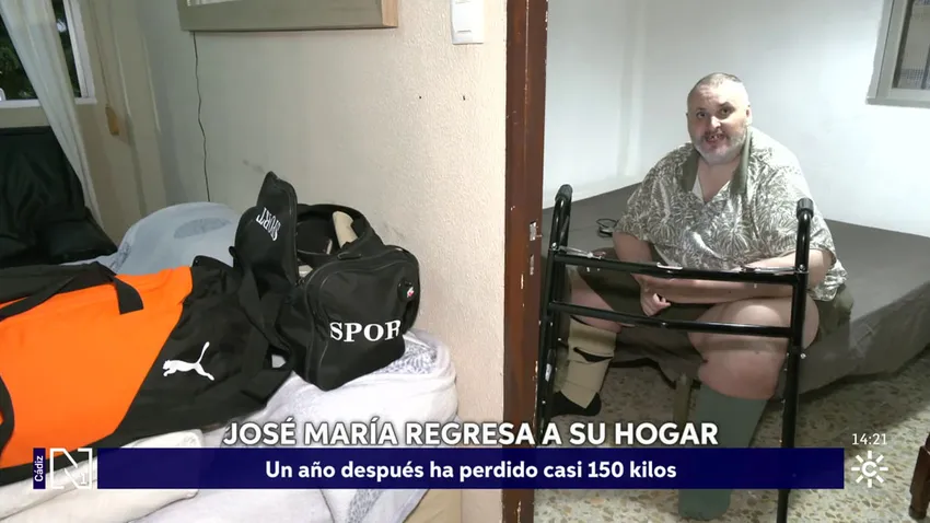 José María, el vecino de San Fernando afectado de obesidad mórbida que llegó a pesar 300 kilos y tuvo que salir de su casa por la ventana en una operación especial de los bomberos, ya está en su casa. Ahora pesa casi 150 kilos menos.