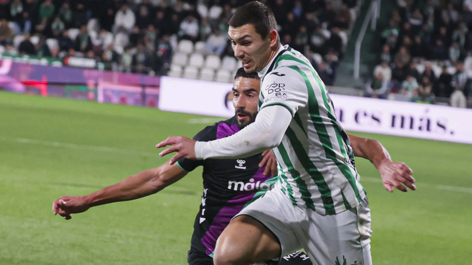 El asedio final de los cordobeses, con el esquema roto y atacando con más corazón que cabeza, estuvo a punto de encontrar premio en el tiempo añadido con un remate a bocajarro de Sergi Guardiola que repelió un defensor in extremis, certificando así una victoria que permite al Málaga superar a su rival en la tabla y llevarse el golaveraje particular.