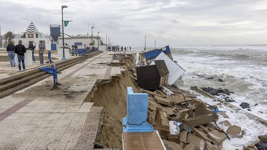 El temporal que azota la costa de Huelva ha destrozado parte del paseo marítimo de Matalascañas, en Almonte (Huelva), donde además hay viviendas en riesgo de derrumbe. Una de las zonas más afectadas es la conocida como 'Pueblo andaluz', donde se han producido daños "de especial gravedad", hasta el punto que "determinados tramos del paseo marítimo han desaparecido", según han denunciado en un comunicado los afectados, que han pedido que por motivos de seguridad "no se debe acceder ni bajar al paseo marítimo bajo ningún concepto".