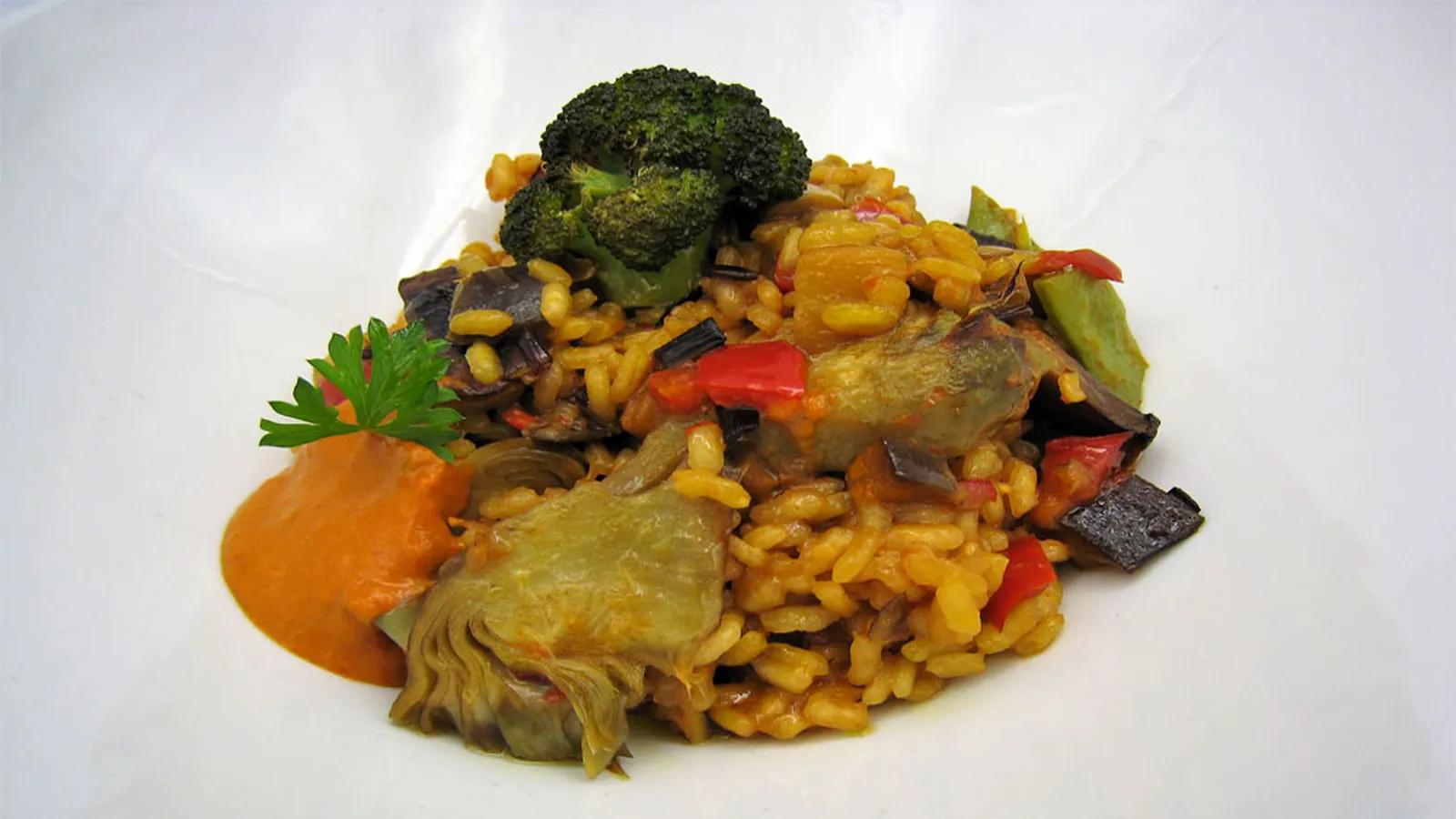 Las verduras y hortalizas de temporada proceden de la localidad de Baños de La Encina, en la provincia de Jaén. Blanco de puerro, pimientos, berenjenas, champiñones, alcachofas, judías verdes, tomates, ajos y hasta brócoli van a servir para la elaboración de este magnífico arroz.