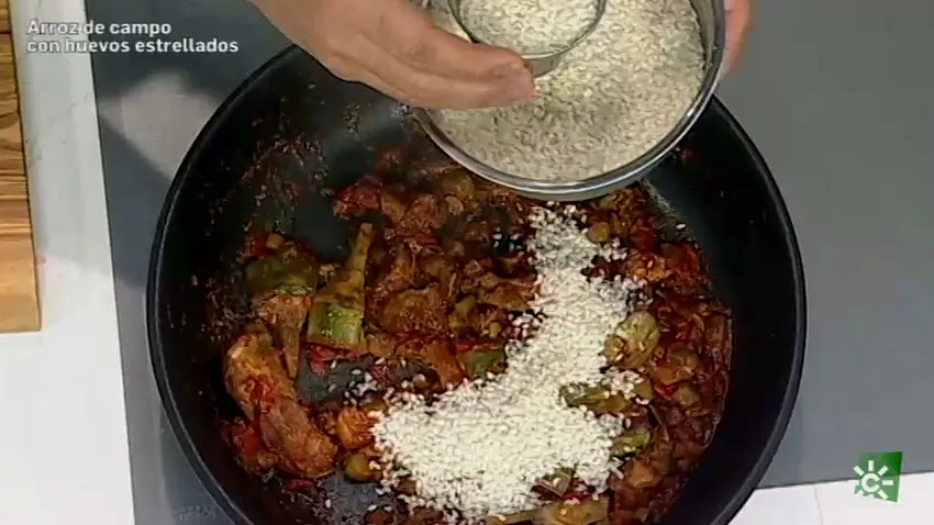El chef Enrique Sánchez elabora un rico arroz de campo con huevos estrellados y responde a la pregunta de muchos: ¿cual es la cantidad de arroz que hay que echar y cuántos vasos de agua o caldo?.