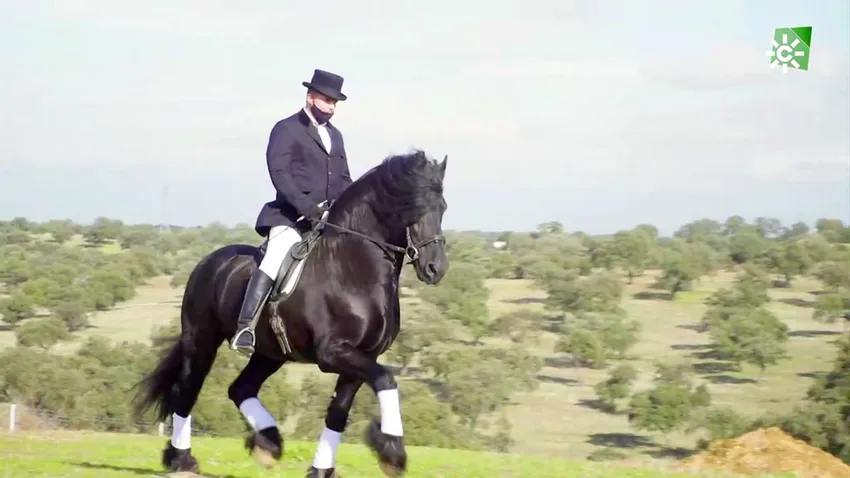 En el valle cordobés de Los Pedroches desarrolla Pablo González Porcel, su pasión por la raza frisona. Estos animales se caracterizan por su elevada altura, expresividad y nobleza. Destacan en los enganches y el tiro.